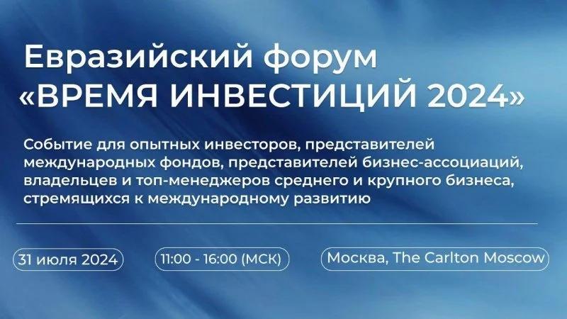 В последний день июля в The Carlton Moscow, конференц-зал «Москва», Тверская ул.,3 состоится Евразийский форум «Время инвестиций 2024». Мероприятие будет проходить в офлайн и онлайн форматах. Об этом «Стройгазете» рассказали представители форума.
