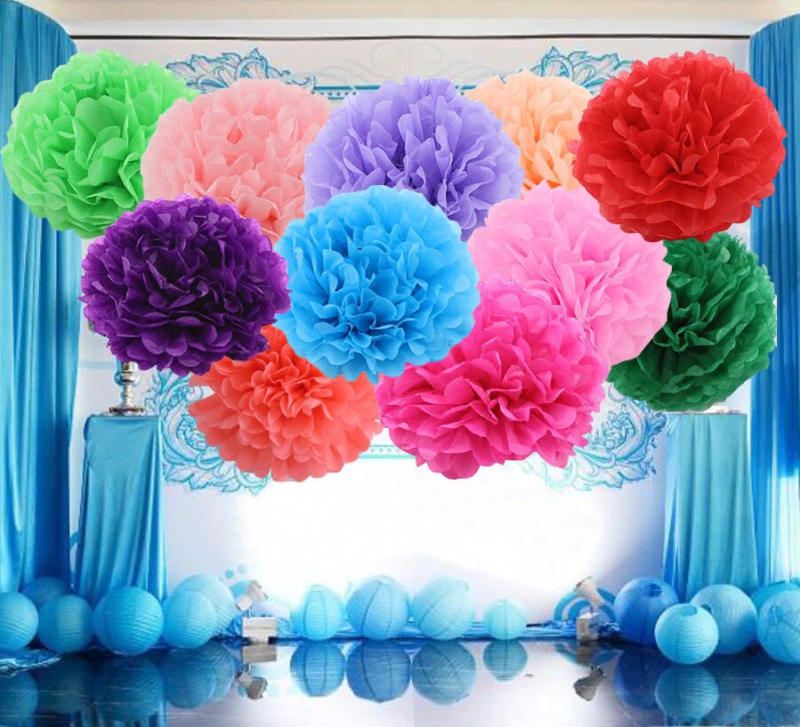 Из салфеток можно сделать пышные помпоны, и закрепив их на стене или стенде получить нарядную, рельефную фотозону.
