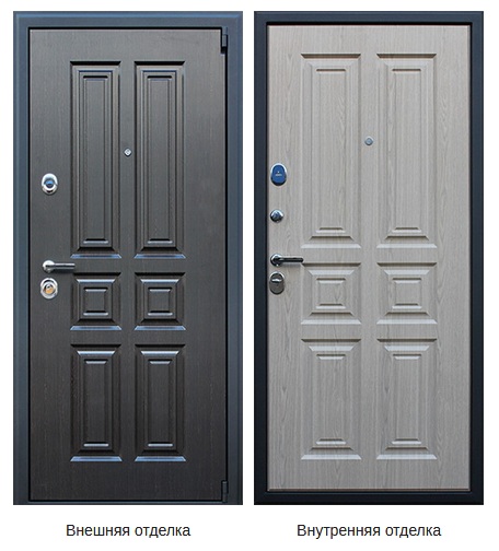 Полихлорвиниловое покрытие прекрасно защищает панели МДФ от влаги, однако нужно помнить, что двери с наружными панелями МДФ не предназначены для монтажа в дверных проёмах, выходящих на улицу. Зато такая дверь будет оптимальным выбором в качестве входной двери в многоквартирном доме (в том числе и при наличии холодного тамбура) или в офисном центре.