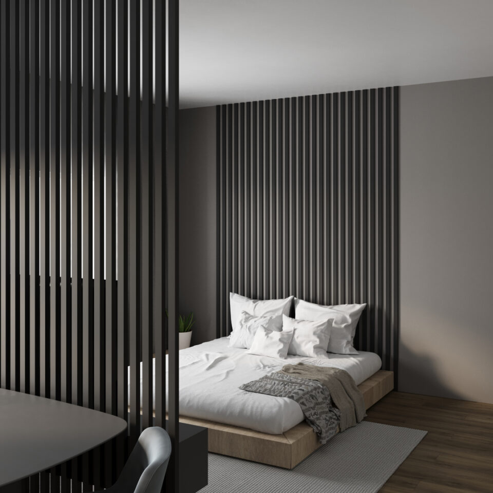 - Прежде всего, декоративные рейки, которые также часто называют баттенами или планками, представляют собой узкие деревянные, металлические или пластиковые профили. Они монтируются на стену в определенном порядке, создавая геометрический рисунок. Главная сила этого приема заключается в его универсальности. С помощью реек можно создать акцентную стену в гостиной, зонировать пространство в квартире-студии, добавить текстуру и интересную игру света и тени в спальне или прихожей. Этот способ отделки органично вписывается в самые разные стили — от скандинавского и минимализма до лофта и современной классики.