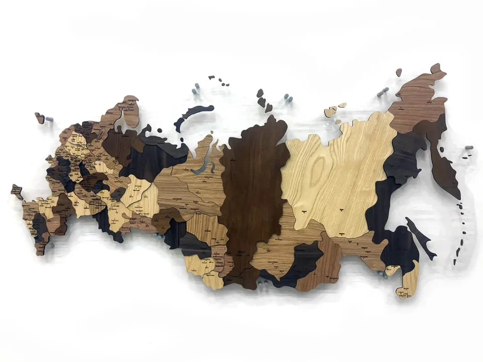 - Не стоит забывать и о функциональности. Многие современные деревянные карты России создаются в формате 3D, с разной глубиной рельефа, благодаря чему они смотрятся особенно эффектно. К тому же такие изделия могут комплектоваться дополнительными элементами: названиями городов, подсветкой, отметками для путешествий. В некоторых вариантах предусмотрена возможность закреплять специальные метки, чтобы отмечать уже посещенные регионы, что превращает карту в своеобразный дневник путешественника и источник мотивации к новым открытиям.