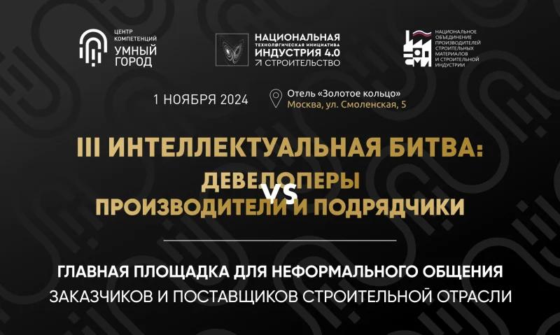 В эту пятницу, 1 ноября 2024 года, в Москве ведущие игроки стройкомплекса столкнутся в азартной схватке: III Интеллектуальная битва «Девелоперы VS Производители & Подрядчики» — главная площадка для неформального общения заказчиков и поставщиков строительной отрасли. Об этом «Стройгазете» рассказали представители битвы.