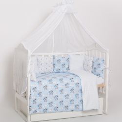 - Типовой набор, включающий простыню, пододеяльник и одну-две наволочки, является базовым. Однако современные производители предлагают расширенные комплекты, куда могут входить бортики (бамперы), балдахин, подушка и одеяло. К выбору этих дополнительных элементов следует подходить взвешенно. Бортики защищают ребенка от сквозняков и случайных ударов о прутья кроватки, но они не должны препятствовать свободной циркуляции воздуха. Балдахин выполняет больше декоративную функцию и защищает от пыли, но также может ее накапливать. Одеяло должно быть подобрано по сезону — легкое байковое или флисовое для лета и более теплое, например, из шерсти или верблюжьей пряжи, для зимы.
