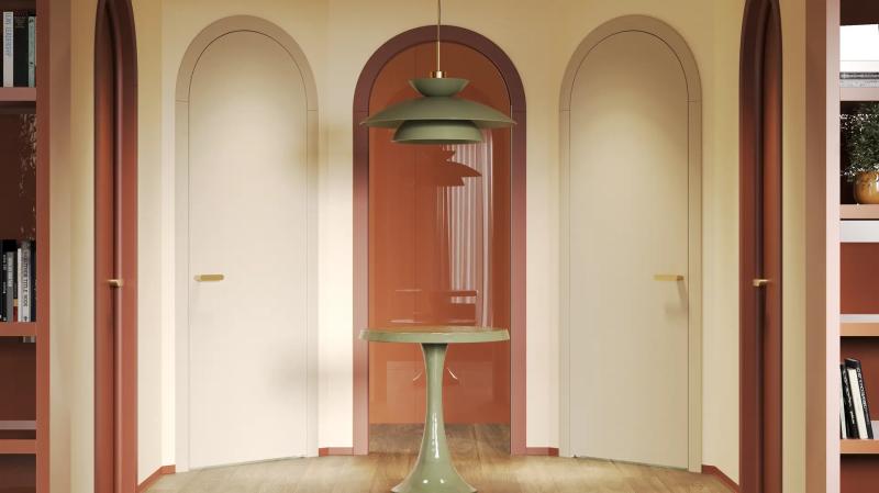 Также арочную тему можно поддержать, скомбинировав двери Ponte и оформив сам проём декоративной аркой — без двери, но с повторяющимися линиями и пропорциями.