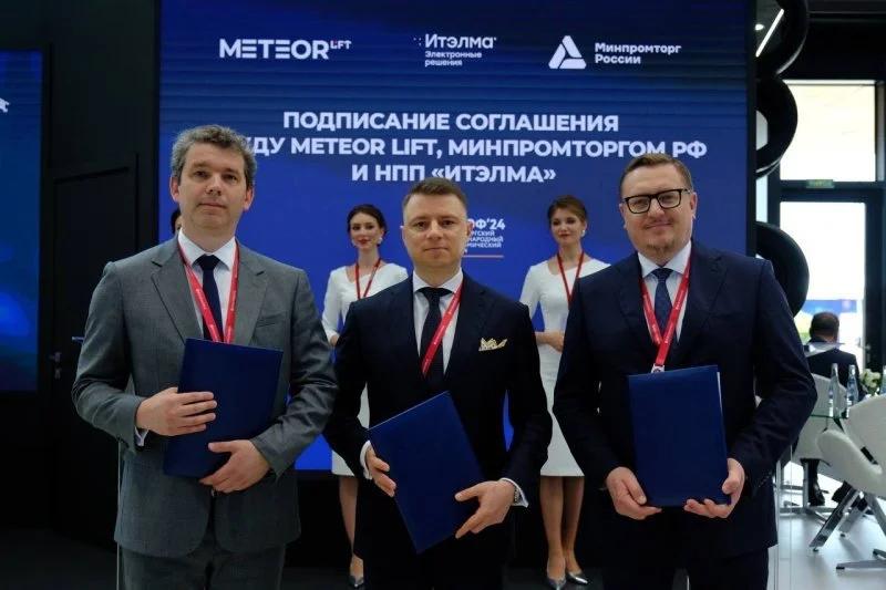 В рамках ПМЭФ-2024 Минпромторг России, METEOR Lift (до ребрендинга «ОТИС Лифт») и НПП «Итэлма» подписали трехстороннее соглашение о сотрудничестве с целью взаимодействия в области разработки и интеграции систем распределения пассажиропотока и мультимедиа.