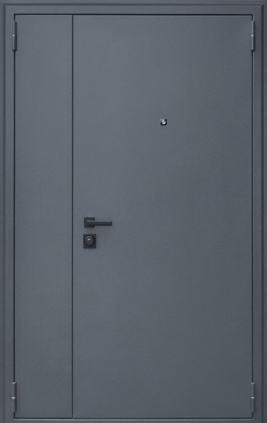 Конструкция дверного полотна модели имеет отличные характеристики взломостойкости благодаря усиленной дверной коробке с П-образным металлическим профилем в районе ригелей замков и броненакладке в замковой зоне.