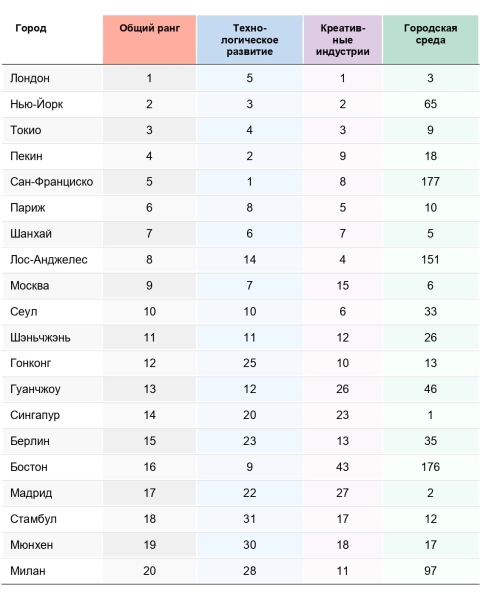 Первое место рейтинга занял Лондон, второе — Нью-Йорк, третье — Токио. Москва на девятом месте.