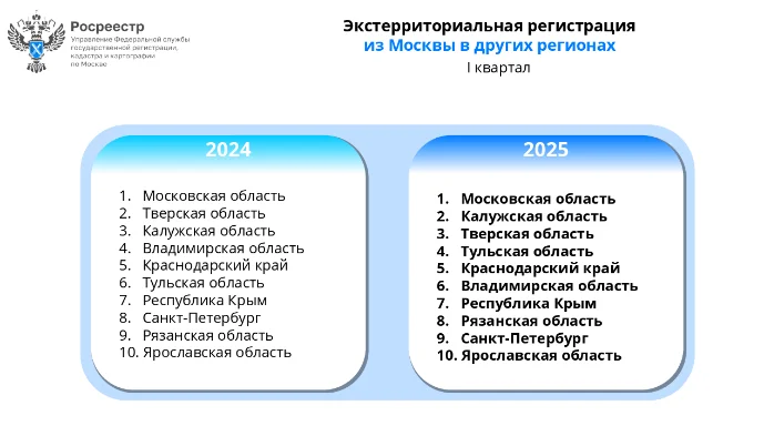 «Экстерриториальная регистрация остается популярным у москвичей способом оформления недвижимости в регионах. Эта услуга Росреестра позволяет оформить права собственности и поставить на кадастровый учет свою недвижимость без необходимости личного посещения субъекта страны. За год число таких заявлений от жителей столицы уменьшилось менее чем на 5%. В то же время в первом квартале наблюдается некоторое снижение активности приобретателей московской недвижимости из других регионов», — отметил руководитель Управления Росреестра по Москве Игорь Майданов.