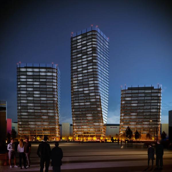Бизнес-центр общей площадью 130 тыс. кв. метров возведут на участке площадью 1,7 га по адресу: Ходынский бульвар, 4/1. Комплекс будет состоят из трех башен высотой 34, 21 и 14 этажей. Динамичный силуэт композиции будет образован за счет плавного поворота фасадов вокруг центральной оси и разновысотности зданий. Архитектурный проект и концепцию благоустройства разработало бюро ADM architects.