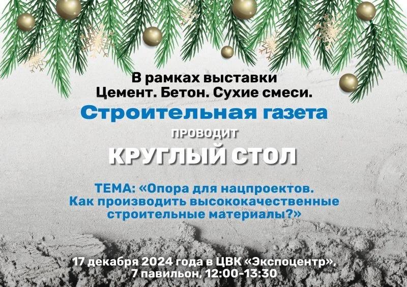 «Строительная газета» в рамках выставки «Цемент. Бетон. Сухие смести» (ЦБСС) организует круглый стол на тему: «Опора для нацпроектов. Как производить высококачественные строительные материалы?».