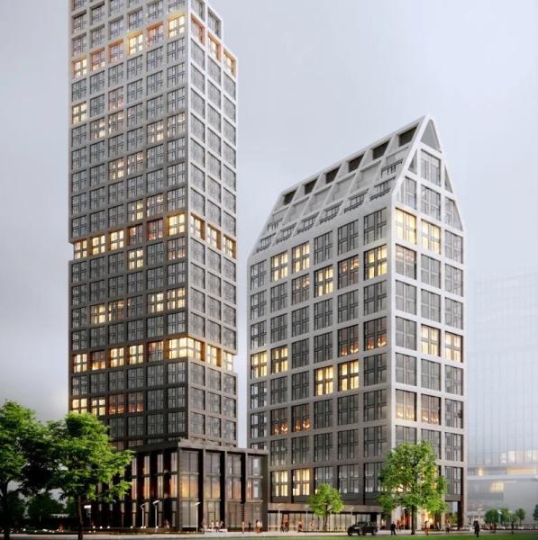 Жилые башни в составе проекта имеют индивидуальные архитектурные решения, которые при этом наследуют единый дизайн-код. Гармония внешнего облика достигается также за счет использования единой цветовой концепции и увеличенной площади остекления. Необычная форма камерной жилой башни станет контрастным элементом на фоне архитектурной доминанты и соседнего офисного квартала, который войдет в состав многофункционального комплекса.