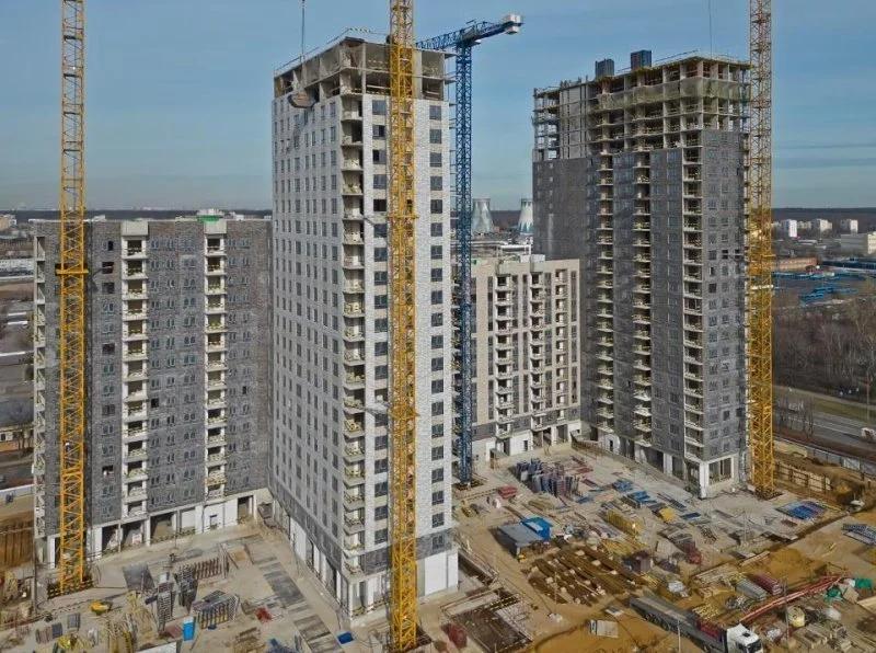 Строители приступили к кровельным работам зданий переменной этажности (от 12 до 25 этажей). Площадь объектов, размещенных на едином стилобате, составляет 43,6 тыс. кв. метров. В них запроектировано 726 квартир, более 70 кладовых и подземный паркинг.