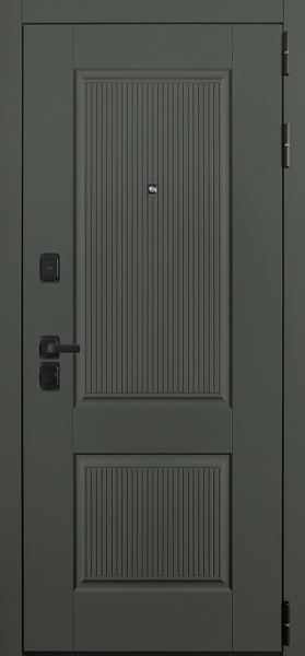 Толстое полотно, утолщённая коробка и 3 контура уплотнения — тишина и тепло остаются внутри. Уникальное порошковое покрытие «муар чёрный» + изысканная внешняя панель МДФ в цвете «Силк Олива» с фрезеровкой. А внутри — экошпонированная панель с объёмным рисунком в «белом матовом» оттенке. Идеально под любой интерьер! Внутри — замки Galeon, броненакладка, противосъёмные штыри и утеплитель высокой плотности.