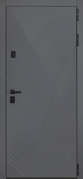 Дизайн «Бастиона» — это сдержанная элегантность. Снаружи — экошпонированная панель МДФ толщиной 10 мм в цвете «графит» с объемной фрезеровкой. Внутри — светлая панель МДФ толщиной 16 мм с большим зеркалом в классическом «белом матовом» цвете. Металлические элементы защищены порошковым покрытием, а фурнитура подобрана так, чтобы гармонично сочетаться с общим стилем. Такая комбинация делает дверь самостоятельным элементом интерьера, который нравится покупателям еще на этапе выбора.