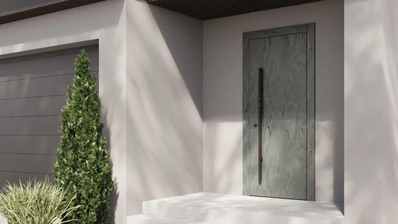 Цвет, который помогает замедлиться и привести мысли в порядок. Плавные узоры камня словно блики на воде. Так и хочется остановиться и рассмотреть их внимательнее. Дверь с таким покрытием точно привлечет внимание. И отлично подойдет для современных стилей интерьера.