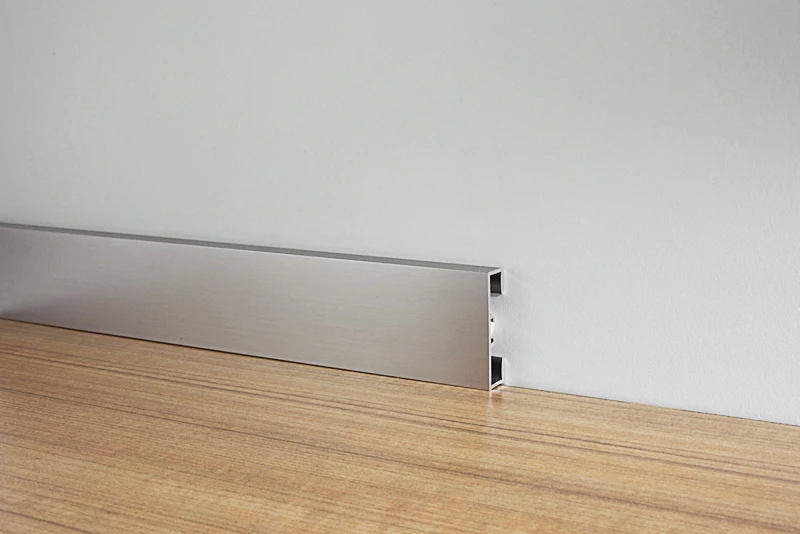 - Интересной особенностью алюминиевого плинтуса является его универсальность в монтаже. Он может использоваться как в жилых, так и в коммерческих помещениях, при этом способ монтажа может быть скрытым или открытым, в зависимости от предпочтений владельца и дизайнера. В некоторых случаях алюминиевый плинтус используется для скрытой проводки кабелей, что позволяет аккуратно и незаметно спрятать электрические провода, не нарушая общей эстетики помещения. Такая функциональная особенность делает алюминиевый плинтус не только элементом декора, но и важным инструментом для организации пространства.