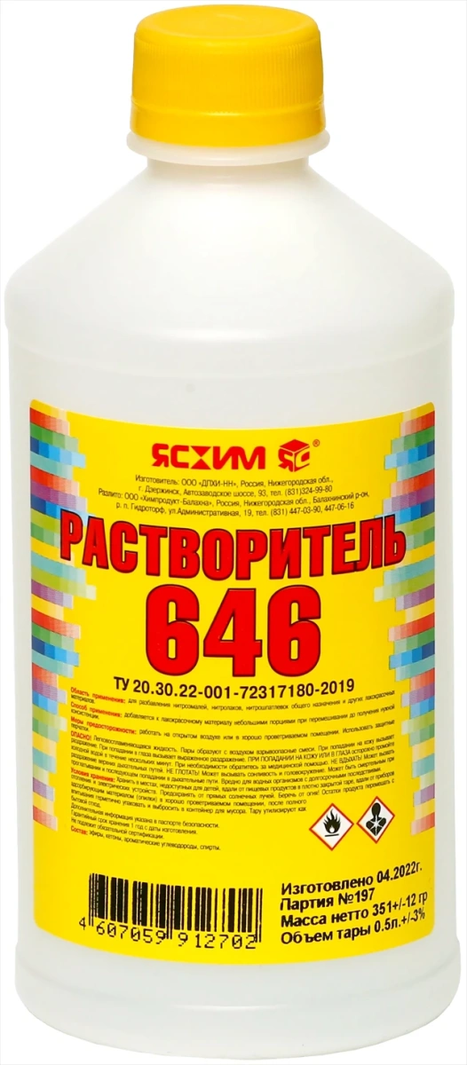 Одним из ключевых отличий растворителя 646 является его состав. Растворитель 646 является смесью органических растворителей, которые могут включать такие компоненты, как алкилбензолы, циклогексанон, толуол и другие. Благодаря этому разнообразию компонентов растворитель 646 обладает разносторонними свойствами и может использоваться в широком спектре приложений.