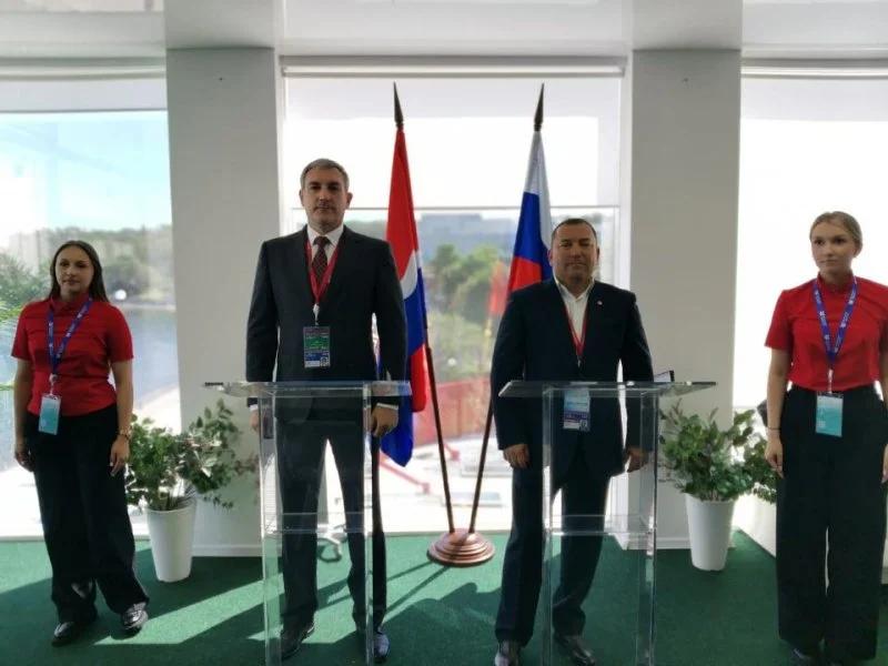 ГК ФСК Губернатор Амурской области Василий Орлов и управляющий партнер ГК ФСК по сегменту «Регионы», генеральный директор ФСК Регион Алексей Алмазов подписали документ в рамках Восточного экономического форума (ВЭФ).