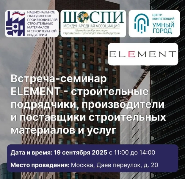 19 сентября 2025 года Ассоциация НОПСМ совместно с Международной Ассоциацией ШОСПИ и Центром компетенций «Умный город» проводит встречу-семинар с компанией ELEMENT — одним из самых ярких и быстрорастущих девелоперов.