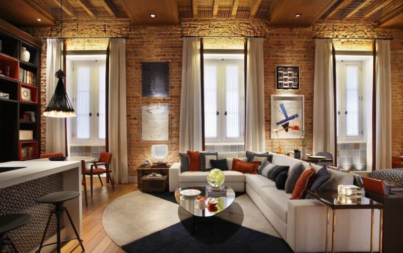 В стиле лофт цвет играет важную роль – создает основной эффект зонирования помещения.
