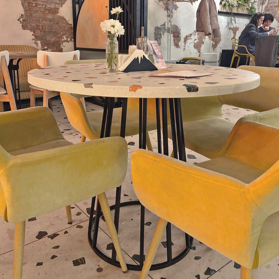 - Выбирая стол из терраццо для своего дома, стоит обратить внимание на несколько ключевых моментов. Первое – это цветовая гамма. Она должна гармонировать с общей палитрой интерьера. Крупная и яркая крошка создаёт активный, энергичный рисунок, который потребует более сдержанного окружения. Мелкая крошка пастельных оттенков выглядит спокойнее и легче впишется в расслабляющую обстановку спальни или гостиной. Второй момент – форма и основание стола. Лёгкий стол-тумба на металлических ножках будет парить в пространстве, подчёркивая современность интерьера. Массивная столешница на таком же основательном деревянном основании придаст обстановке солидности и надёжности.