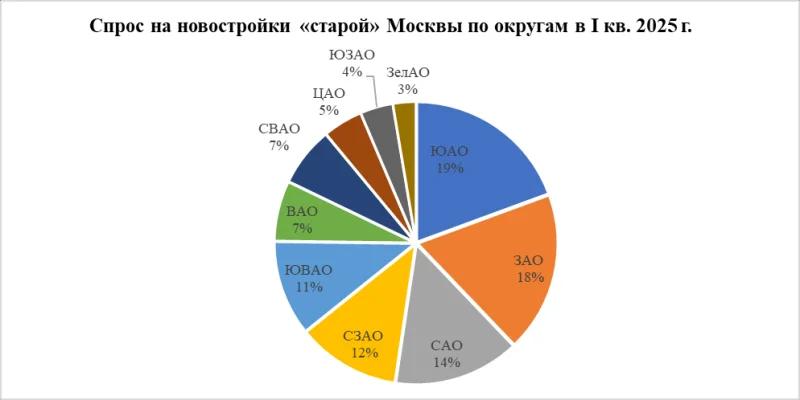 В сегменте бизнес-класса лидером продаж в I квартале 2025 года стал Южный административный округ с долей 25% от всех сделок в Москве. Далее следуют Северо-Западный (16%), Западный (15%) и Северный (13%) административные округа.
