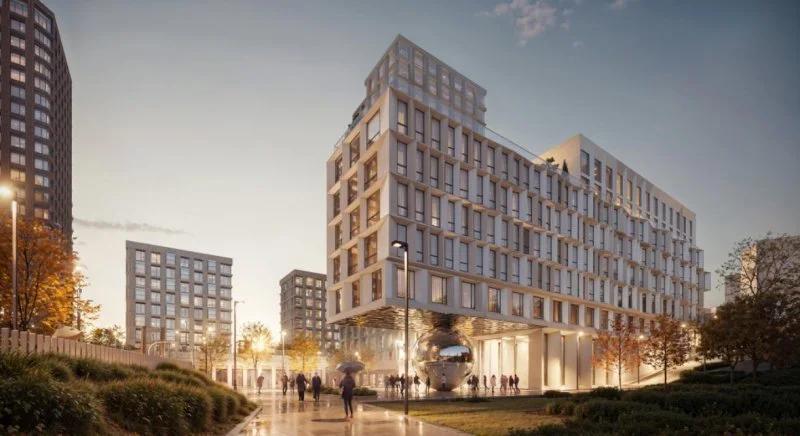 «Акцентным элементом общественного пространства станет металлический шар высотой семь метров — архитектурный элемент одного из корпусов жилого комплекса. Арт-объект окружен посадкой молодых деревьев и кустарников, которые, отражаясь в нем, создают необычную оптическую игру. Как Солнце является центром нашей Вселенной, так и шар – центром притяжения жилого комплекса», — рассказал первый заместитель генерального директора ФСК Регион Роман Капинос.