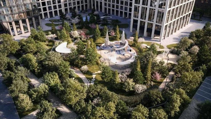 Открытые детские зоны расположатся во внутреннем дворе площадью почти 7 тыс. кв. метров. Благоустройство двора-парка от бюро Scape включает в себя организацию событийных и игровых пространств: амфитеатра, площадки для малышей, плейхаба для детей старше 9 лет.