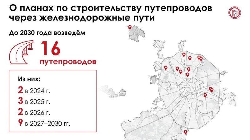 В столице построят еще 16 путепроводов через железную дорогу до 2030 года. Об этом Сергей Собянин сообщил в своем Telegram-канале.