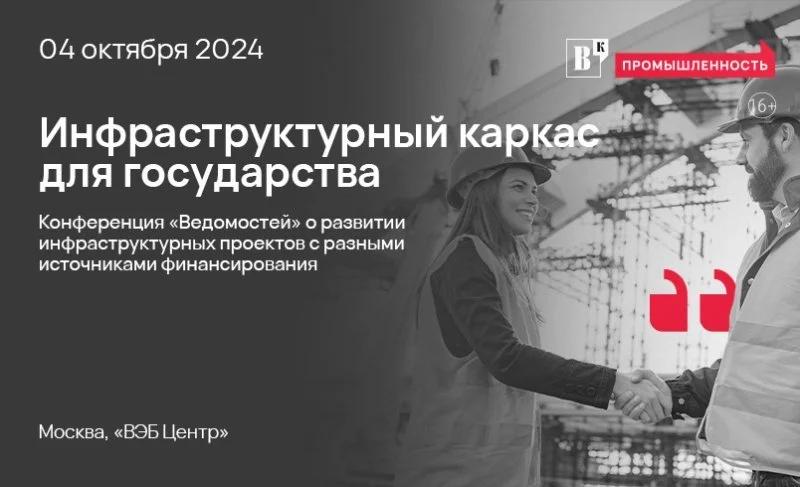 4 октября 2024 года в Москве пройдет конференция «Инфраструктурный каркас для государства», об этом сообщил его организатор — деловое издание «Ведомости».