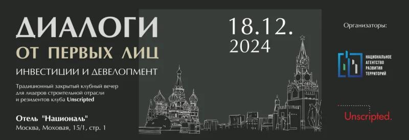 18 декабря 2024 года в отеле «Националь» состоится традиционный закрытый клубный вечер для лидеров строительной отрасли и резидентов клуба Unscripted — «Диалоги от первых лиц. Инвестиции и строительство. Итоги года». Об этом «Стройгазете» рассказали представители мероприятия.