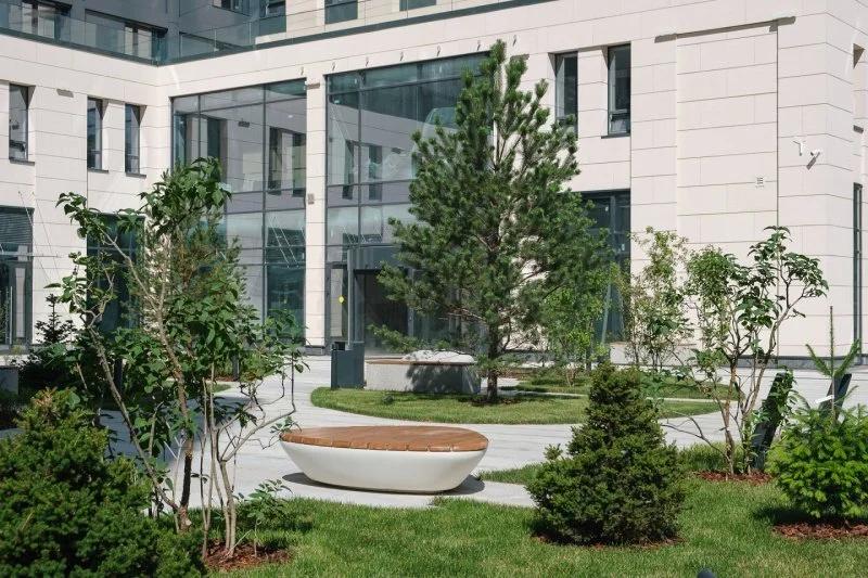 Территория апарт-отеля благоустроена по концепции ландшафтного бюро Derevo Park. Основные зеленые зоны расположены в двух внутренних дворах.