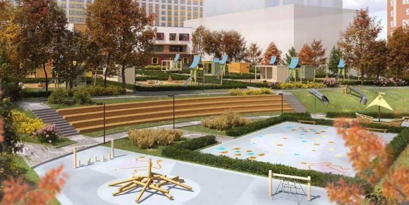 Девелопер благоустроит территорию детского садика. Для воспитанников организует игровые площадки с оборудованием, направленным на развитие детей, спортивные зоны для активных занятий. Изюминкой благоустройства станет амфитеатр, где можно проводить групповые занятия на открытом воздухе.