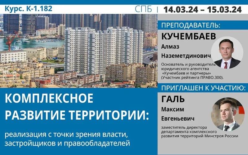 Курс лекций на тему «Комплексное развитие территории: реализация с точки зрения власти, застройщиков и правообладателей» прочитает Алмаз Кучембаев, градостроительный юрист с двадцатилетним стажем, лично участвовавший в более чем десяти проектах КРТ. Вторым спикером выступит заместитель директора департамента комплексного развития территорий Минстроя РФ Максим Галь.