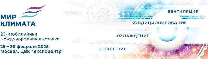 20-я Международная специализированная выставка «Мир Климата» состоится с 25 по 28 февраля 2025 года в ЦВК «Экспоцентр», Павильон 2. HVAC/R индустрии в России.