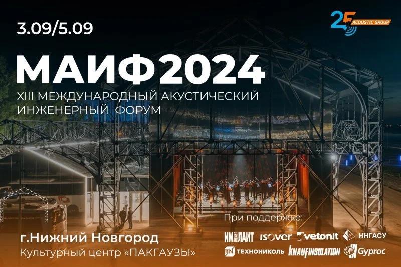 XIII МАИФ-2024 – значимое ежегодное событие, объединяющее профессионалов в области архитектурно-строительной акустики, звуко- и виброизоляции. Основная цель мероприятия — общение специалистов-практиков различных архитектурно-строительных специальностей, регулярно сталкивающихся в своей работе с вопросами звуко-виброзащиты и акустического комфорта помещений.