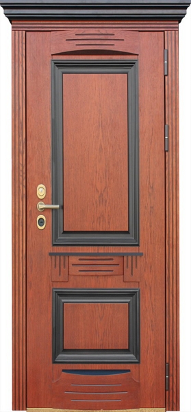 «Фараон» — это гармоничное сочетание стильного дизайна и элитных комплектующих. Использование в конструкции внешней панели из шпонированной панели, обрамленной порталом с изысканным рисунком делает входную дверь не только надежным оплотом для защиты дома, но и вполне самостоятельным элементом дизайна элитного загородного дома или офисного помещения.