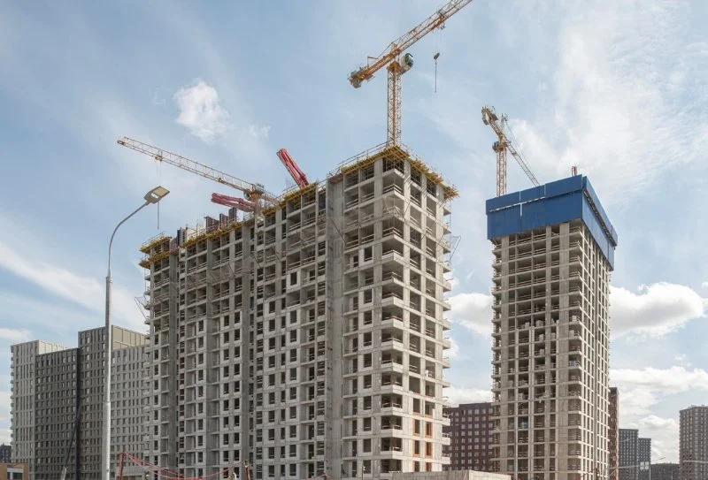 Клубный дом уже полностью готов в монолите, на двух других корпусах продолжается устройство монолитно-бетонных конструкций на отметке в 17 и 21 этаж.